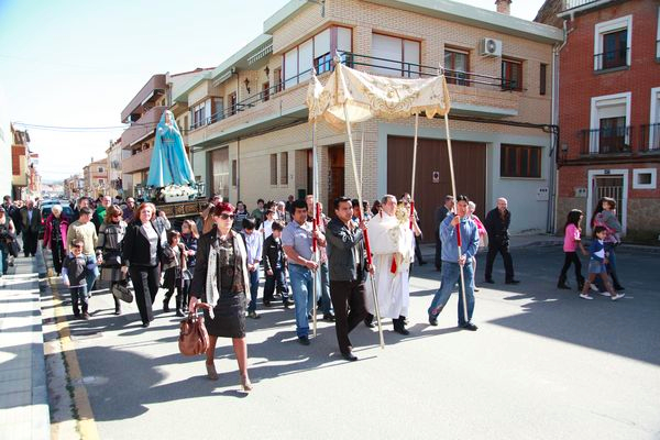 A las once y media de la mañana, con un cielo totalmente despejado, se produjo el encuentro a la altura de la Plaza del Ayuntamiento entre madre e hijo. La Virgen, portada por los padres de los comulgantes, había salido de la Capilla de Cristo Rey mientras que el párroco de la localidad descendió desde la iglesia Santa Fe con el cuerpo de Cristo bajo un palio portado también por los padres de los comulgantes. En ese momento, la banda municipal de Caparroso interpretaba el "Himno a Navarra" mientras se quitaba el velo negro a la Virgen y el abandero hacía el saludo a la Dolorosa. De ahí, todos los asistentes regresaron a la Parroquia Santa Fe donde tuvo lugar la tradicional misa del Domingo de Resurrección.